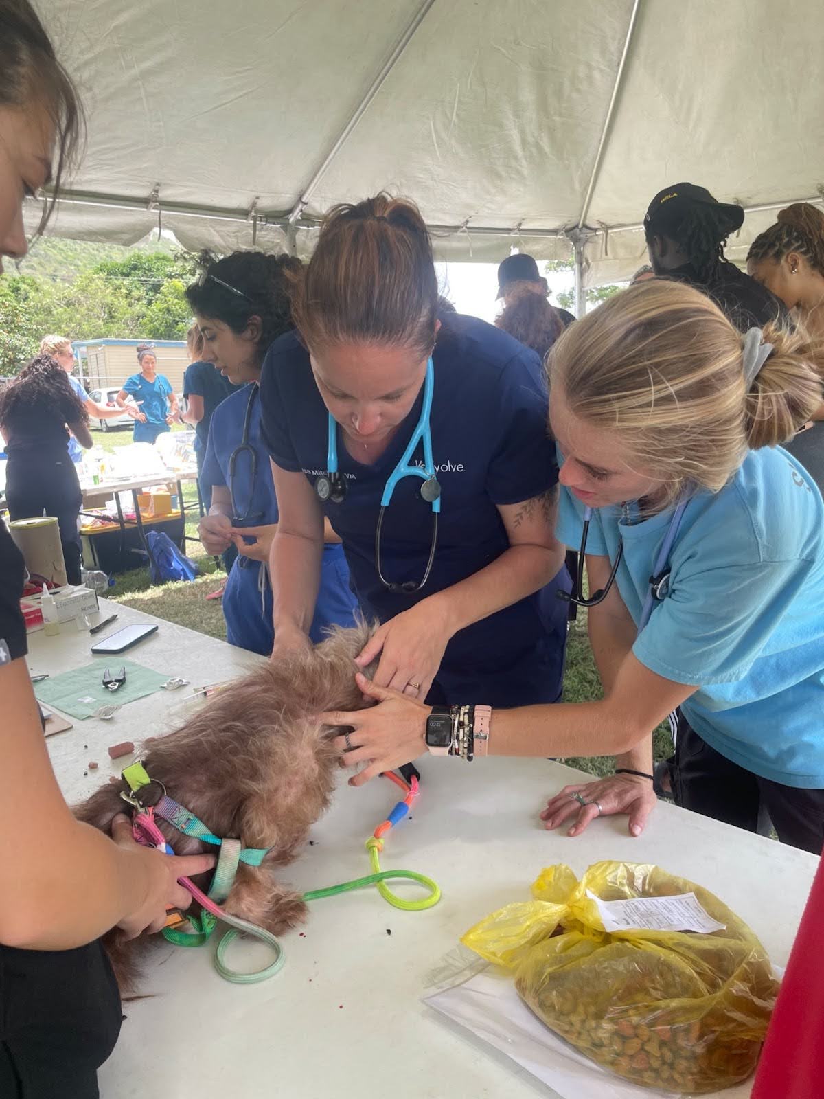 As an LVT herself, Ashley knew she would be able to help, along with her travel partners, Ross alumnae Dr. Renee Addison from Veterinary Emergency Services in Verona, Virginia and Dr. Vanessa Mitchell from Companion Animal Clinic in Blacksburg, Virginia. With their skill sets and their mentorship mindsets along with donated collars, leashes and medications, last week on July 6, 2024, they helped Ross students treat over 300 animals.